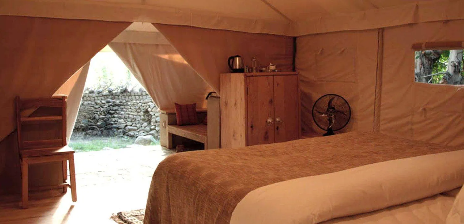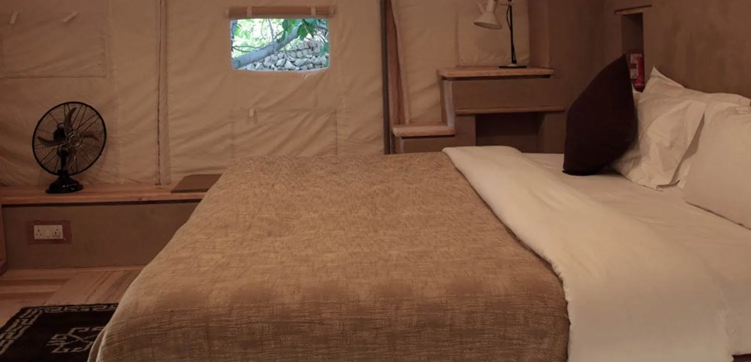 Our Double Tents features a large, comfortable King size bed (2m x 2m). Upto two additional guests can be accomodated upon request at the time of booking.